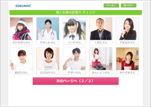 SOKUNOUシリーズ「ソクノー記憶」は記憶力を強化するトレーニングを行い、学習・試験・仕事・日常生活に役立てることができる記憶力トレーニングプログラムです。記憶術に必要となる記憶力を向上させることを目的として、1日7分間で記憶の基礎能力を高めていきます。